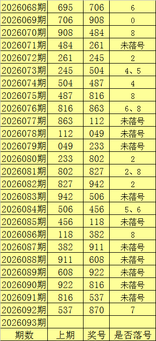 一、上期回顾:福彩3D第2026092期开出奖号870。